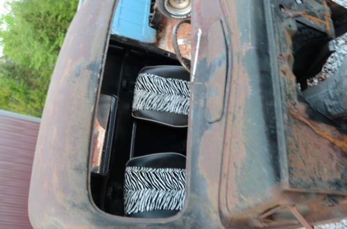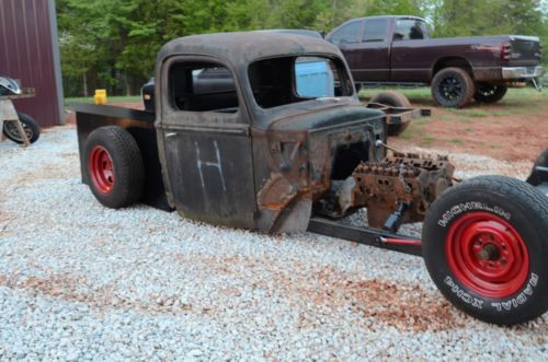 1940 FORD TRUCK HAS AIR BAGS FRONT AND REAR THE TRUCK A CUSTOM 2x4 SQUARE TUBE FRAME THE FRONT AXLE IS A 1947-1955 CHEVY TRUCK AXLE . TRUCK HAS NEW VEGA STEERING BOX NEW FOUR LINK SET UP IN REAR THE TRUCK BED WAS CUSTOM MADE IT HAS STORAGE IN IT. THE BAGS ARE NEW THE TRUCK ROLLS AND STEERS. IT IS SET UP WITH A SMALL BLOCK CHEVY AND A TURBO 350 TRANS BOTH ARE BAD BUT REBUILDABLE. THE REAREND IS A FORD 9 INCH THE TRUCK HAS ZEBRA SKIN SEATS . THE CAB IS CHANNELED 7 INCHS.