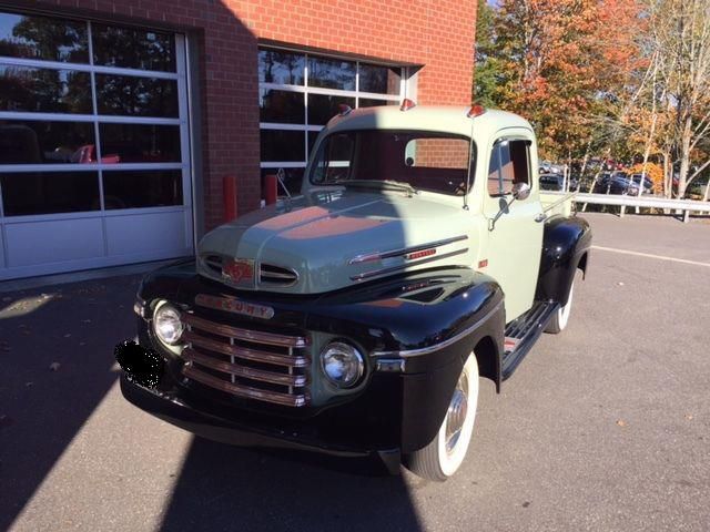 This 1950 Mercury M-47 pick-up in great shape! 114” wheel base with Flat head V8 102 hp. It has Radio, 3 speed transmission and heater and deforester. White wall tires with deluxe beauty rings, cab lights added with turn signals. Palisade green and black fenders with running boards. And a matching show sign with full fitted truck cover to match.