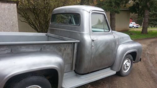 Selling a 1953 Ford F100 Anniversary Edition pickup. This truck is truly rust fee. Currently the truck is stripped down to bear metal. The bed and hood were primed already, but both solid. The cab, doors, and fenders are all stripped and coated, so that they won't rust. The truck has it's original flatehead V-8 engine, that runs awesome. Still retains it's original 6 volt system. The transmission is the original 4 speed on the floor. It has the original radio and speaker. It seems to work, but can't find a station. Nothing on the truck has been changed. The floors are solid too. The seat is brittle as is the rest of the interior, but all original. The blinker switch was taken out to be replaced, so there is not currently any blinkers hooked up. The lights and brake lights work. The panels line up great! Please look at the pictures closely and ask all questions before bidding.