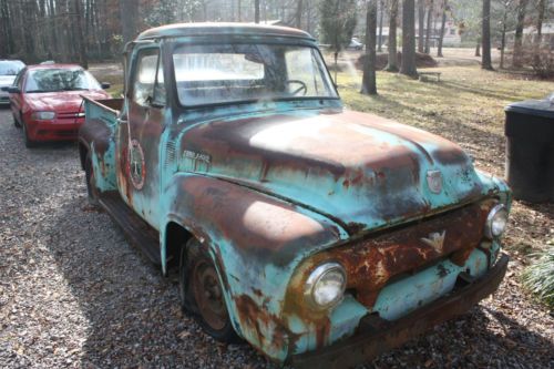 1954 FORD F100 SWB all original complete truck very little rust Alabama truck since new was used for a display for our business and I said no to selling more than I can count ,we have since moved and I'm starting a vw bus project so I have decided to sell this truck is all there little bit of rust in cab corners and two spots on hood intended on late model running gear and motor clear it and build the ultimate ratrod the patina is perfect! was driven up to 10 years ago when it blew a head gasket she was parked, not a cut up butchered truck and getting very hard to find will assit with shipping any questions call 256 390 8565 thanks and good luck! vin F10V4A11967 COLOR A 767J PRODUCTION CODE