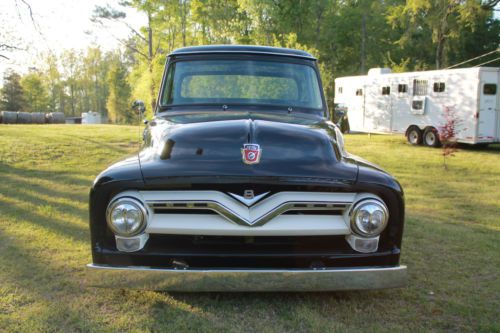 1955 Ford Custom Cab pickup. Fatman rack and pinion front end. Ford 9" rear end. 302 motor. C6 automatic transmission. Tilt steering. New glass, paint, and wiring. Excellent, fresh restoration. For more details please call David at 706.988.1771 |
