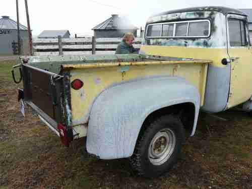 You are bidding on an an original 1956 Ford F100. This is a partial restoration, some panels primed. Bench seat has been recovered. There is some rust (fenders, floor boards, etc...). The front fenders and hood are from a super duty or heavy duty truck. The engine is a 307ci with automatic transmission but it’s been a year or so since it was last cranked. The truck has a clear (signed) South Dakota title. A $500.00 deposit is required within 24 hours of the auction closing and a certified check or cash for the balance is required on pickup.