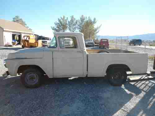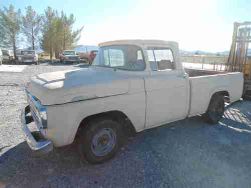 NO RESERVE! 57 FORD SHORT BED BODY, 95% RUST FREE.IT HAS A 58 GRILL, GOOD NEVADA TITLE IN MY NAME . not the correct engine, the intake manifold is missing. I AM LOCATED 60 MILES WEST OF LAS VEGAS IN PAHRUMP.IT'S LISTED LOCALLY & I RESERVE THE RIGHT TO END THE AUCTION ANYTIME!!