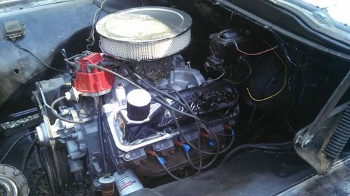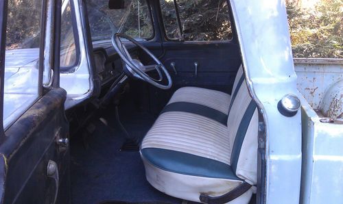 This is a 1958 Ford F-100 that has a 400M and C-6 transmission swapped into it. It has the original straight front axle and 4 wheel drum brakes which work, but could use rebuilding. The truck runs and shifts well. The odometer does not show actual mileage. Most of the factory gauges need work, there are aftermarket oil pressure and coolant temp gauges under the dash. The seat is in very good condition and is out of a slightly newer Ford truck. All the tires hold air, but are older. The windshield is cracked on the passenger side and most other windows are also cracked.