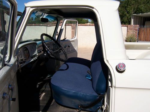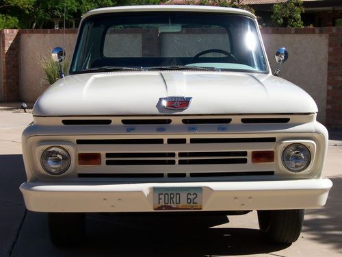 Listed is a 1963 Ford F-100 Shortbed Unibody. Original owner, bought from Sanderson Ford In Glendale AZ. This has been an Arizona truck since it was purchased. Engine has been rebuilt .020 over and has approximately 1000 miles on it. It was repainted and has always been garaged. Owner installed new door and window seals, and seat upholstery. She has a 4 core radiator and custom built rear bumper. Never wrecked and clear title. All the glass is good and no rust at all on body. Brakes have less that 1000 miles on them. Original radio and heater, no AC. This truck is stock.