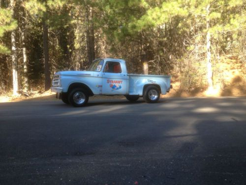 Super straight shortbed flareside with original Baffin Blue paint. Always turns heads and draws a crowd everywhere it goes. New radiator, carpet, windshield rubber, taillight lenses, and entire fuel system. 114 H.P. 223 inline six (runs perfect). Original engine. Rebuilt 3-speed manual transmission. 9 inch rear end with 3:70 gears. 15 x 7 and 15 x 10 chrome reverse wheels with 99% tread on tires. All decals on truck are removable vinyl. Superior 500 steering wheel. Sun Super Tach II. Period correct red tinted rear window. Current license and registration. Drive anywhere. Very reliable and fun pickup. Stored in Northern California. Interested parties encouraged to call (209) 914-7978 for more information on this unique Gasser style truck.