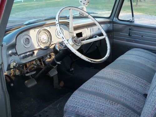 Super rare shortbed Unibody. Previous owner rebuilt the Y-Block engine and it runs great! Body is straight and has a few rust spots (see photos). Truck has the typical Unibody rust, however, the floor panels look solid. The truck is missing the tailgate and headliner. The passenger's side window needs to be put back on the track....it is inside the door right now. Will be repaired prior to auction end. Good tires.