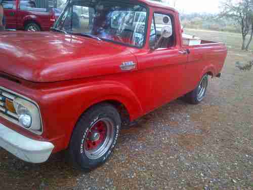This is a 1963 Ford F100 unibody short wheel base, the truck is in great condition, runs great, and I have a clean title, tires are in good shape, have just completed going completly threw the truck, all fuel lines, break lines, breaks, master cylinders are newly replaced. motor is tuned and runs like and champ.