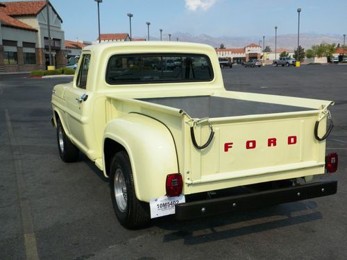 THIS TRUCK IS IN GREAT SHAPE ! IT IS A NEVADA TRUCK . HAD VERY MINOR SURFACE RUST BEFORE PAINT JOB. IT HAS A STEEL BED .MOTOR AND TRANSMISSION HAVE LESS THAN 200 MILES ON COMPLETE OVERHAULS . THE TRANSMISSION WAS CHANGED FROM STANDARD TO A C4 AUTOMATIC TRANSMISSION. HAS NEW PAINT , BRAKE MASTER CYLINDER , REBUILT STEERING BOX , NEW EXHAUST SYSTEM , TIRES AND ALLOY WHEELS , FRONT AND REAR BUMPERS , REAR SLIDING WINDOW , CARPET , DOOR PANELS , HEADLINER , VISORS , PADDED DASH , CUSTOM ROLL AND PLEATED SEAT . ALL THE WEATHERSTRIPPING HAS BEEN REPLACED AROUND DOORS AND GLASS. I HAVE THE ORIGINAL OWNERS MANUAL IN GLOVE BOX AND ALSO THE FORD SHOP MANUALS. LOTS OF EXTRA PARTS INCLUDED ALSO. FEEL FREE TO HAVE SOMEONE INSPECT THE TRUCK FOR YOU PRIOR TO BIDDING . ANY QUESTIONS PLEASE CALL ME ! PHIL 702-203-5973