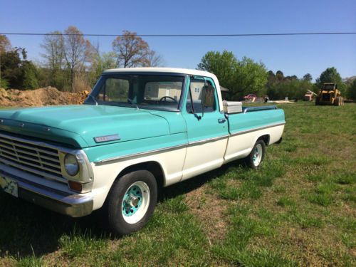 NICE CLEAN 1967 FORD F100. NEW PAINT REBUILT MOTOR 60 OVER 390 BORED. SEAT NEEDS RECOVERED . NO RUST. CUSTOM . STILL HAVE OWNER MANUAL SHOW ORIGNAL PURCHASED DATE.