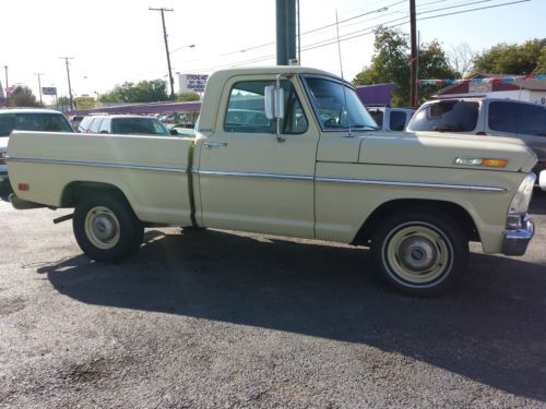 This 1969 Ford F100 Custom Cab Short Bed, is a 6 Cylinder, with Automatic transmission and Power Steering. The truck only has 64K miles!! Vehicle runs and drives, and is ready for the road. It has some minor scratches and a tear in driver's seat. Refer to pictures. Light surface rust...no rot.