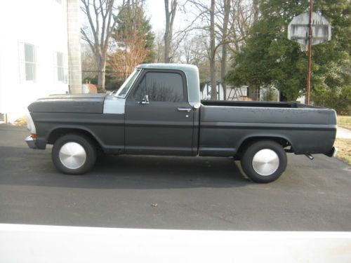 1970 F100 Short Bed with a 429 V8. It is a very good candidate for fixing up, I bought this truck to do the same and had started replacing some interior parts and lowered the rear but I have some unexpected bills and unfortunately I can't put money into the truck. It has a 429 V8 that came out of a 70' T'Bird, mild cam, C6 trans w/shift Kit, Elderbrock Intake, 4BBL, Headman headers, Flowmaster dual exhaust, MSD ignition and wires, New Aluminum Radiator, Chrome Oil Pan, 9" rear, Moon wheels, new taillights, Power steering needs adjusting, Drum brakes (spongy), intellitronix digital dash, Grant Steering Wheel,Kenwood Stereo, custom built console with cup holders, New glove box, new dash bezels. Exterior has few rust spots driver fender (I have patch) , driver door(I have patch) , very tiny holes in bed, under hood has few tiny rust spots, passenger side corner cab has been pushed in (I have patch), few dings thru out truck. Interior: seat needs reupholstered, speed odometer not working needs part (easy fix), does show oil leak when sitting for a while, Also comes with A/C kit for the interior and the clutch. Awesome truck for fixing up. Truck runs really good, and gets lots of thumbs up!