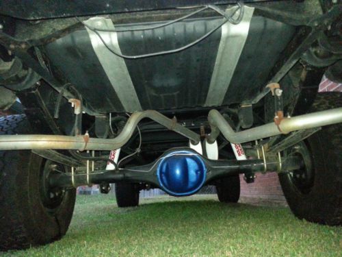 3-owner Converted to 4wd 3 years ago 400 ci V8 C6 Auto transmission Edelbrock 4bbl intake and 650cfm carb Gear drive Lunati Bracket Master CAM Accel Distributor/coil Summit Digital Ignition Hooker Super Competition Ceramic Headers NP205 T-case Dana 44 High Pinion 3:73 posi Ford 9" 3:73 posi All new Rough country 21/2" spring lift Dual steering stabilizers Quad shock front suspension w/adjustable track bar Upgraded transmission internals with extra capacity pan All new steering links including drop pitman arm Mickey Thompson Classic Wheels BFG All Terrian T/A KO's 33x12.50 RE-wired using EZ-wire 21 circuit kit, soldered and weather pack connections All new lamps and lenses. Interior is almost brand new with exception of headliner Upgraded steering wheel and 100MPH Speedo Kenwood CD/MP3 Kicker Components in doors Kicker 10" Sub behind seat (2) Kicker Amps, 1-Mono 1-Multi Channel Back of Fenders and entire body sealed with rust converting coating and 3M rubberized under coating, Frame painted with black chassis saver New cab mounts New radiator/fan shroud New firewall insulation Cab floor, rust proofed and dynamat like product applied under vinyl floor covering New Borg Warner collapsible steering shaft. Numerous other replacements/improvements Truck was painted in 2000 w/single stage enamel, needs some minor rust repair and would benefit from a re-paint but still looks great from 20ft. Thanks for looking. |