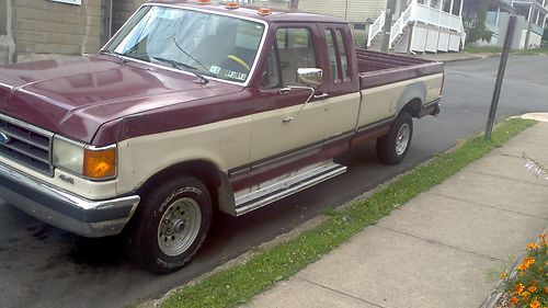 1991 Ford F150 XLT Lariat 4x4, extended cab with 8ft bed. It runs and drive good. Needs a little work but nothing major. You have to put the steering wheel all the way up to start it or lift on the steering wheel if its not up all the way. I think there is a loose connection in the steering column and the idle is rough sometimes but I was told it was an air sensor or something related and that it acts like a vacuum leak. I changed the oil and trans fluid to have clean oil and trans fluid in it. It has a new battery, half shaft-which is between the steering column and steering box. Driver seat has a seat cover on it because material on seat is torn. Very little rust underneath and bed fender wells have been fixed as seen in pictures. The only area of rust is under the extended part of the cab and that's known for. Dent on front left fender.The transmission is good but the timing is off as far as when to shift into the next gear. I'm not sure if that is an electronic shifting issue or what it may be. It needs inspected and I was told that all it would take is to weld or clamp a 2 foot pipe to the tail pipe to get the tip out past the fender a little bit. Its a 22 year old truck and it has some issues, but its better than some other trucks out there on the net or anywhere there is any for sale. The bed panels have been repaired and saved and won't have to worry about replacing them. Passenger window needs attention because the motor is not against the thing that makes the window go up and down. 4 wheel drive does work. It's makes good for a hauler of metals or junk parts to start a business or to do whatever else you have in mind for it. It does have a class 3 hitch to haul any size trailer. If you have any other questions, message me. It may need tune up, I put new spark plug wires but nothing else yet. I have posted pictures, but more pictures can be requested. The reason I'm selling is because I'm moving to Texas and can't take with me and I already have another vehicle. I can't drive both down. I have put every detail in the description that I know of and am being up front and honest about everything I can say about the truck. I only know a little about cars as far as changing oil or basic stuff, I don't have any knowledge beyond that. I have listed what I was told about what the truck needs or has issues with.