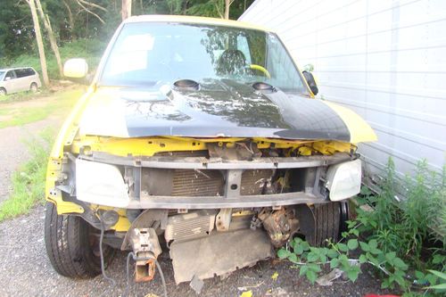 2003 Ford F150 Boss 5.4. This is one of 500 made by LA West conversions in 2002 and 2003. The trucks were either yellow or orange and have a serial number on the driver's door post. This is a southern truck that I bought damaged, but am closing up shop now that I am 60 and selling off all unfinished projects. I have used fenders, grill, bumper assy, headlights, fiberglass grill support, and another Boss 5.4 hood with minor damage to go along with this truck. Some frame pulling will be needed and a new core support is suggested but these are available aftermarket for short money. Please know this is a Mass SALVAGE title in my name. Know what the requirements are in your state (if any) before you bid. I cannot help with any other paperwork once I sell it. A lot of money can be made here on this one.
