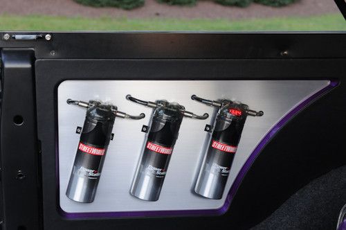 ON TOP ARE 3 AMPLIFIERS- 2 THUNDER 942 AND 1 MTX 1004