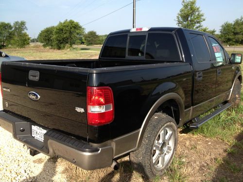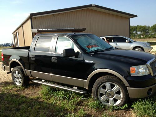 IF YOU ARE LOOKING FOR A BEAUTIFUL FORD F150 2WD LARIAT..THIS IS THE ONE. IT IS A NON SMOKER WITH 109875 ON THE MILES. IT IS BLACK WITH A TAN BOTTOM AND TAN LEATHER. IT HAS 20" PIRELLI'S THAT HAVE ABOUT 85% LIFE REMAINING ON THEM. FACTORY 20 WHEELS THAT ARE IN NICE CONDITON. THE TRUCK WAS USED AS A COMMUTER TO AND FROM WORK. THE BED HAS SOME WEAR BUT NOTHING ABUSIVE AT ALL. BID WITH CONFIDENCE AS I AM 100% ON MY FEEDBACK. PLEASE ASK ANY QUESTIONS YOU MAY HAVE.