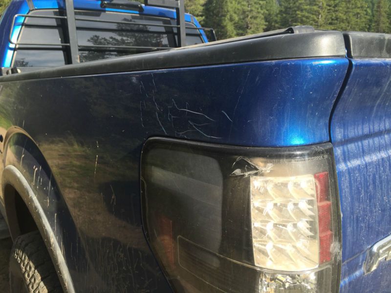 I purchased it in Grand Junction Colorado and have owned it for less than a year (getting rid of it for family reasons, boooo). Wish we didn't have to. It runs awesome and looks great. Has a 4" lift with over-sized tires and Metal Militia wheels. Has a spare tire under rear bed of truck. Has been great for towing the snowmobiles, raft, and camper. The back seats are awesome for "stuff" or two adult-sized passengers. Interior is in good-great shape. Has minor scuffs in areas where you might expect. Has XM radio, killer moonroof, black cloth, rubber floor matts in front. AC was not blowing cold when I get it but I live at high altitude and couldn't care less. No navigation, no backup assist.The exterior is a real nice blue with average wear and tear. Some underbody rust exists but nothing to be overly concerned with. Bed is covered with a hard tonneau cover which folds back in 4 sections and locks securely. Has "Back Rack" rack in the rear to protect the rear single piece of tinted glass window (not a sliding up/down rear window, sorry). Plastic/synthetic bed cover fits nicely under cover and protects the bed. Once upon a time the original owner had a leveling kit in the rear. Some electronics, hoses, and wires are still in the bed of the truck (tucked out of the way and I have never messed with them). LED lights all around in front and rear (small crack in rear driver-side LED). Front bumper has a few small scratches from bushes and desert driving. Running boards on both side are strong and in great condition.