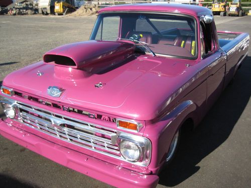 Up for auction is one Bad Truck. The show and go (AllTHROTLLE No Bottle) Truck is up for sale. This 66 ford is a show winner, and has never lost a street race. It has a pro built 514 Ford by Hank Gosnell. All the best parts. New 460 block, bord and stroked, Lunati crank & rocker arms (roller), Childs & Albert connecting rods, roller timing chain (Comp cams), Lunati Pistons, Sig Erson cam 6.40 Lift 286 I 294 E Duration, Blue Thunder Heads, C&A piston rings, Manly Guide Plates with 3/8 push rods (Chevy valve train), APR Bolts, Edelbrock Victor Aluminum water pump (8860), Victor 460 Intake, MSD Ignition, Moroso Pan & Pickup, Milidon oil Pump, 850 Holly Dubble pumper Carb, and more. All this is backed up by a built Trans King, Transmission with Trans brake, JW SFI Flex Plate and Trans King 3000 Converter. The engine has Sanderson Headers, with Flow Masters, and full length exhaust. A Aluminum Griffian Radiator Keeps this baby cool. A narrowed Ford 9" with Locker, Moser Axels, and 4.33 Curry Gears, puts the power to the ground. The chassis is Chis Alston back half, Ladder bars and Roll cage. The front is mustang type with Tubular A armes, ajustable coilovers, Manual Rack. All instaled by Copperhead Racing. The truck has 4 wheel, 11" over 9" Wilwood Disk Brakes for stopping. A B&M Pro Ratchet Shifter with Hurst Line Lock, help off the line. A Ididt tilt column, and Ron Francis wiring, adds to the pro build. Matton's Custom upholstery did the interior, with custom race buckets and 5 point harnes. The body is stock 66 F250, with Glass Pro Street Scooped hood and fiber glass front bumper. The inner fender wells, and Pro Street tubed bead are all Stanless Steel, and a Jaz Fuel cell top the look off. It's running Weld Wheels, and this Truck is low to the ground. It will take a low trailer to transport. The Truck dose have a few small brush tuch ups on the paint, and the interior has a burn mark on the headliner above the drivers seat. (Please look at pictures closely)The Owner has spent meny meny dollors on this Bad Boy, but said it must go. You can buy this truck for a fraction of build cost. Buyer is responsible for shipping and all shipping costs. We will help with loading on our end and in anyway we can. For questions please call Bill (208)750-0000