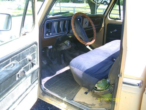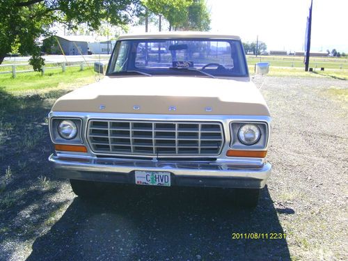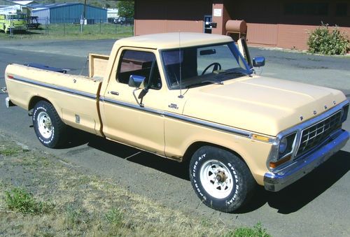 Up for sale is this 1978 Ford F-250 pickup with a regular cab & 8' long fleetside bed. I have owned this truck since 2003 and I have kept up on the maintenance, this is a good running & driving work truck which I would not hesitate to drive cross-country in if necessary (her name is "Blondie"). I have put between 1000-2000 miles a year on it since I have owned it. Mileage shown on the odometer is 84,964. Body has been well-preserved from rust as it has always been a desert truck (Eastern Oregon & Nevada). This truck has a 4-speed standard transmission on the floor (it was originally an automatic) and a strong running 351M 8-cyl gas engine. This originally had factory AC but all that has been removed. It has two fuel tanks but only the front tank is hooked up, the back tank has been disconnected for as long as I have owned it (and the selector switch went with all the AC stuff when it was removed). Tires (LT235/85R16) have a lot of tread wear, more so on the front as I swapped out the backs for snow tires(not included) each winter. Rims are white painted steel cookie-cutter types. This has a 2" hitch ball on the rear bumper and is wired with a 7-pole electrical connector I hooked up for towing a small camp trailer. The passenger side on the bed has a factory in-bed storage compartment. Also there is a plastic side tool box installed in the bed. The back window has shaded window film installed. The entire exhaust system was replaced in 2005 (manifolds, single Thrush straight tube muffler, front & tail pipe). I replaced the clutch, pressure plate & throw-out bearing in 2006. I have replaced the intake manifold gasket, the carburetor (this is a rebuilt 2-bbl carb with manual choke from a 1969 F-250), the brake shoes & pads, heater core, side mirrors and rear view mirror, driver's side window regulator, sunvisors (black vinyl), Door panels (black plastic aftermarket), rear axle seal, differential seal, ignition coil, battery, tune-up parts (plugs, cap, rotor, wires), radiator hoses, belts and of course wipers, oil & filters as needed. The air filter is a std. 14" round filter in a chrome Edelbrock frame. Last year I replaced the tie rods, steering linkage(center and drag links & link sleeve), and front axle bumpers as well as all four shocks. So not only have I kept it maintained, but I have restored some things here and there over the past 10 years whenever the mood hit to spend some money on her. This truck has quite a few minor cosmetic concerns which I will now mention: Lots of small dings and scratches, especially on the truck bed (NO Bondo: this is the original paint). There is an area on the hinge side of the drivers door that is wrinkled (the bottom hinge failed and was eventually replaced but the damage was done) and the tailgate has a dent on top from the truck rolling backwards while the tailgate was down and striking a signpost, and a dent above the driver's side tail light. The windshield has a crack on the drivers side coming up from the bottom about 12" and a chip above that which is starting to spread. The bottom seat vinyl is cracked and tore up pretty good & I have a cloth seat cover over it (the seat back is from a different seat and is in great condition). The rubber floor mat is cracked up from heat because there is no insulation on the floor (so it's a little louder inside than it should be). The vinyl dash cap is missing so the dash is just bare brown painted steel. This truck had personalized Veteran plates when photographed which will not be included in the auction, they have already been transferred to another vehicle. If you are taking this out of state this won't matter as you'll need new plates anyway. Oregon buyers should figure new plates into the cost before bidding. If you plan on driving this away you will just need to pick up a temporary/ 30-day tag (trip permit) for the window from the DMV. I've taken a variety of pictures so please look them over closely. Feel free to ask questions, I will respond as soon as I can.