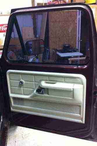 Exterior: It is a maroon/brown color that has been painted in the past 10 years. It is a nice paint but it does have some blemishes on it as you would expect. The body of the truck is good and solid without dents.