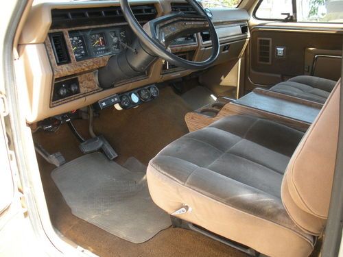 1986 Ford F250 in good shape with nice interior. I found this truck in 2004 with 60,000 and was owned by a doctor in California. It comes with a Banks turbocharger, Gear Venders Overdrive unit, Flex-A-Lite electric fans and Optima batteries. Instruments include EGT, Boost, Transmission Oil Temp, Engine Oil Temp. New items installed include front suspension bushings, ball joints and tie rod and new hydraulic pump. Engine does not leak oil and the truck runs very well and I used it mostly for California highway use and occasional light towing here in Missouri. This would make a very nice everyday driver or it would be a good base to start nice project. This truck is fully mechanically controlled and easy to work on. Interior is very nice with no rips in the seats and tight headliner. Thank you for viewing our auction and bidding!