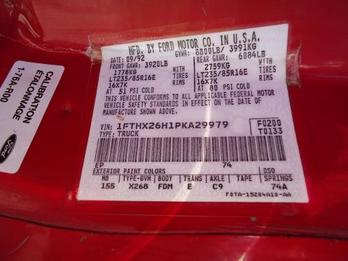 VIN (Vehicle Identification Number): 1fthx26h1pka29979