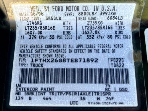 VIN (Vehicle Identification Number): 1FTHX26G8TEB71892