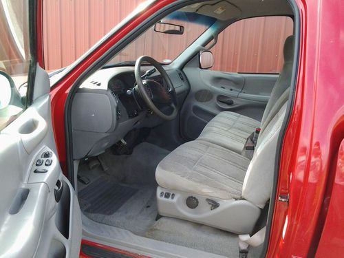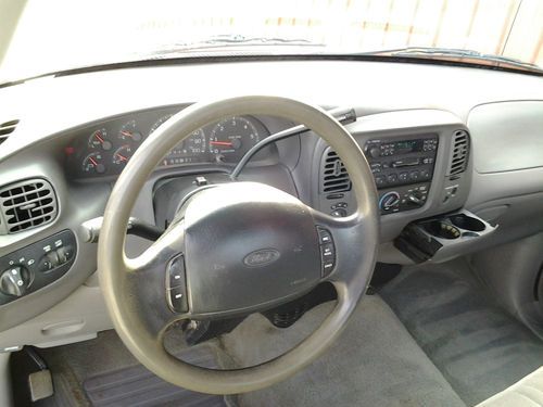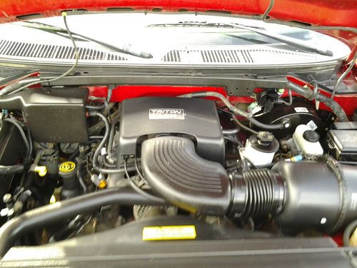 The motor in this truck is a 5.4 Liter V-8. A very dependable, powerful, and long lasting motor traditionally. This motor was used in many Ford trucks and SUVs, so parts and maintenance are easy find. This is a quite running motor that idles smoothly, and runs down the interstate even smoother (I was impressed and I drive one myself). The transmission is tight and shifts smoothly, it does have the electric over-drive shifter on the gear selector, to quickly go from OD to drive when pulling a load or otherwise. The 4x4 is in working condition. It engages easily from the knob on the right side of the driver, from 2 wheel high to 4 wheel high then to 4 wheel-low range.The steering is tight, the truck tracks straight down the road without pulling right or left. The brakes stop smoothly and straight as well, no noises. The tires are in good shape as you can see in the pictures and there is a spare located under the truck bed.