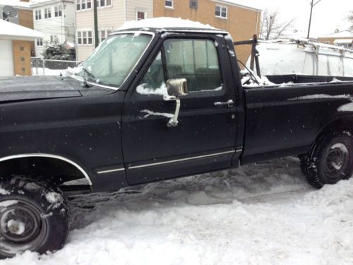 Up for sale is a 1988 Ford F250 with a 7.3 diesel engine with 70,000 original miles with a snow plow. The truck is automatic, with power windows and locks, A/C and Heat, recent black matte primer added for the exterior. Truck was rid of rust on the body prior to the primer being applied. There is rust on both bumpers though. Truck has had a lot of work done to it within the past few months however the truck smokes (white smoke), starts a little rough, and needs a little more TLC.