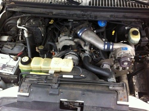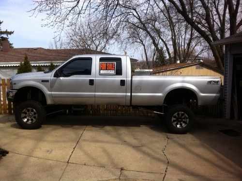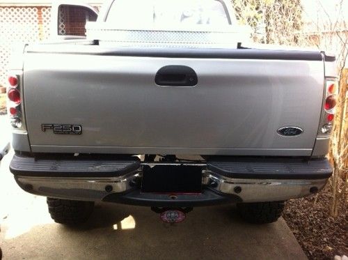 This silver F-250 4x4 crew cab long bed (8') Super Duty XLT has a Powerhouse 6.8L v-10 motor with a Vortech Supercharger which is not hooked up at this time. When hooked up, belt put on and computer chip put in under dashboard driver side the horsepower will increase from 310HP to 425HP and torque increases from 425lb/ft to 515lb/ft while running on premium gas. Only 68,383miles on it. I am the third owner of the truck and I have all history work/papers of the truck from the original owner to the second owner as well as myself. This truck is truly a fun smooth riding truck for its size 172" long because it sits on a Kelderman Air-Ride System which are airbags all around along with Bilstien 7100 series shocks with remote reservoirs. The airbags allow you to control the height of the truck by using either the in cab controller while the engine is running or the key fob remote when the engine is off. Height can range from bottomed out at 5 inches (no air), all the way to topped off at 13 inches, but ride height should be anywhere in between, preferably 8-10 inches is normal riding height. If for some reason you get pulled over because it is too high due to state law just lower it down right there on the spot. (personal experience). I had the transmission rebuilt to a heavier duty as well as a heavier duty torque converter. The tires are pretty new (Sept2012) have about 3000 miles on them if that, they are Procomp Xterrain35/12.50R17LT sitting on 17'' Moto Metal MO955 series. The interior is custom black leather with a 7 inch pioneer Dvd/Navigation/cd player with remotes, duel MTX subwoofers behind back seats, Alpine tweeters and 6x9 speakers. It has remote starter, back up sensing system, Siege train horn. Lee hydraulic steering assist. Has a diamond plate toolbox that has the 5 gallon air tank and Viair 400 compressor in it along with diamond plate bedrails. The engine has Borla headers, K&N air filter,has 4.56 gears with aluminum differential covers. Warn locking hubs. The bed is lined with Rhino lining, has cab steps all around, tailgate has piston assistance to open slowly, custom head and tail lights, tints on windows, ,has MBRP exhaust, comes with a drop down hitch and truck cover. In other words, its flipping awesome.
