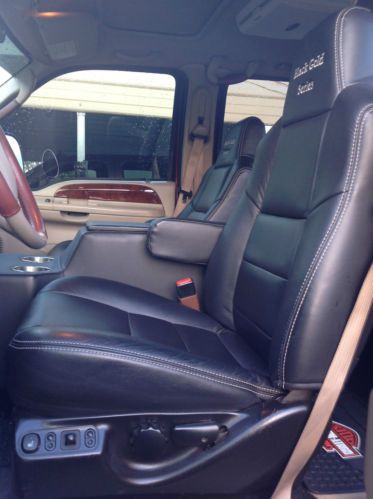 Black Carpeted Interior and Blacked out Katzskins Leather Seats Kenwood Touch Stereo System With AM/FM, CD, Sirius, DVD and iPod DVD player on roof for rear passengers Focal Speakers through out J&L 5 Channel Amp Custom Box behind rear seat All Stereo work done by Custom Sounds