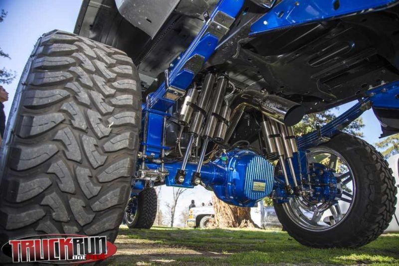 Fabtech air bumps. Custom rear suspension using Atlas springs. Truck was completely gutted and what isn't Candy