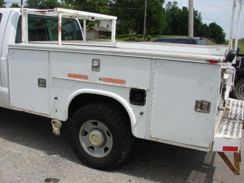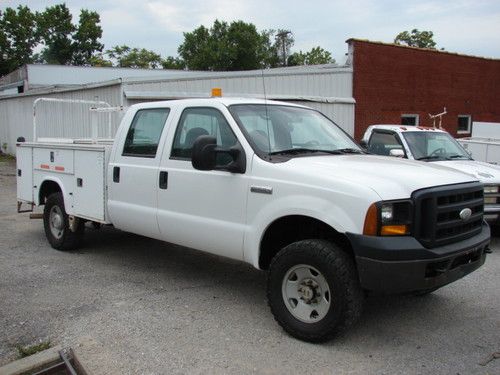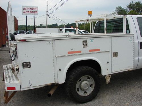 SUPER DUTY 3/4 TON WORK TRUCK READY TO ROLL! LOWER MILES FOR 2006 MODEL, TONS OF INTERIOR SPACE TO HAUL CARGO/PASSENGERS. TRUCK MECHANICALLY IN GREAT OPERATING CONDITION. HAS 9FT UTILITY BOX ALSO IN GREAT CONDITION. SOLID DOORS ALL AROUND, ALL BOTTOMS OF BOXES ARE SOLID AS WELL. BED FLOOR SOLID NO HOLES OR RUSTING. INTERIOR OF TRUCK CLEANS UP NICE, DOES HAVE TEAR IN SIDE OF DRIVERS SEAT, CAN EASILY BE COVERED WITH SEAT COVER AND YOU WOULD NEVER NOTICE, RIDES COMFORTABLE AND SMOOTH! HAS OFFROAD TIRES THEY DO HAVE ROAD NOISE BUT BALANCED AND SMOOTH RIDE, ABOUT HALF TREAD LEFT. IF YOU HAVE BEEN IN THE MARKET FOR A HEAVY DUTY 3/4 UTILITY TRUCK THIS IS YOUR TICKET. CALL 859-588-4994