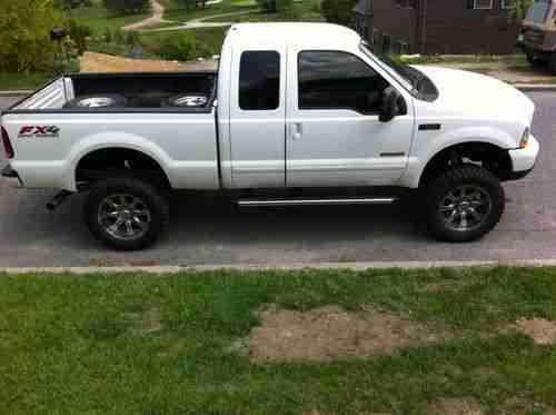 I,M SELLING MY F250 SUPER DUTY.IT HAS NEW WHEEL BEARINGS,NEW BALLJOINTS,NEW AXLE JOINTS,NEW PINION SEAL.IT HAS 6''LIFT WITH MICKY THOMSON BAJA MTZ TIRES ON 20'' RIMS.THE TIRES ONLY HAVE 2500 MILES ON THEM.THIS TRUCK IS MY DAILY DRIVER SO MILES WILL GO UP,BUT NOT MUCH BECAUSE I DONT USE IT THAT OFTEN.IT HAS PLOW MOUNTS BUT HAS ONLY BEEN PLOWED WITH 6 TIMES ON A SHORT DRIVEWAY...THE PLOW MOUNTS ARE NOT GOING WITH THE TRUCK UNLESS YOU WOULD LIKE TO PAY AN ADDITIONAL 2000 DOLLARS FOR MY 7.5' FISHER STAINLESS STEEL XBLADE MINUTE MOUNT PLOW.IT COMES WITH FACTORY 16'' RIMS BUT THE TIRES ON THOSE RIM DO NOT GO WITH THE TRUCK,I NEED THEM.IT HAS AN ACCIDENT REPORT DUE TO GETTING REARENDED THAT CAUSED JUST OVER 1000 DOLLARS DAMAGE WHICH INSURANCE PROMPTLY FIXED.THIS IS A GOOD TRUCK!!! IM SETTING THE RESERVE LOWWWW!!! IM SELLING BECAUSE I NEED MONEY FOR NEW BUSINESS VENTURE.IT NEEDS SWAY BAR LINKS AND FRONT WHEEL HUB...HAS DENT ON TAILGATE.THANKS FOR LOOKIN FEEL FREE TO EMAIL ME WITH ANY QUESTIONS...HAPPY BIDDING..