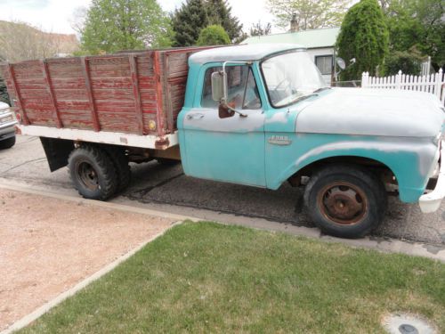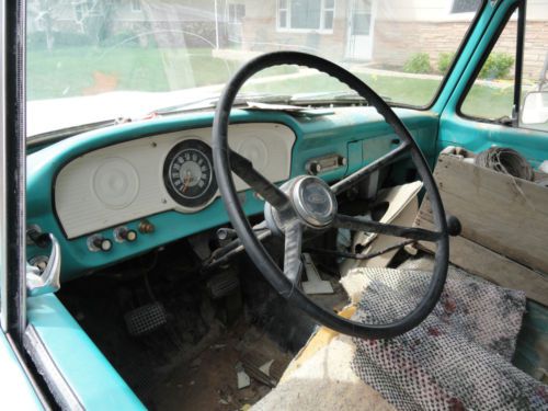 There`s no pumping the gas pedal or choking/ unchoking it, You just barely flick the key & it starts & purrs. It`s jetted & set for 5000 feet altitude. Motor is a 150 horse 240 cubic inch straight 6. Runs excellently. Trans is a New Process np435 4 speed with a super low granny gear. Differential is a Dana 70 that`s geared at I believe a 5.87:1 ratio so top end is mid to upper 50`s mph range while low end pulling power is impressive. 7.50x 16 wheels & tires, 7 of `em. The 9 ft flatbed with header & sides was made in December `64 so I`m sure it`s been on it since day one. It has factory overload springs and can haul way more than a ton. Carb & engine block still have their original tags. I watch ebay for trucks like these and see maybe 3 if that, in any given year. So either they`re rare or the people that have `em aren`t parting with them. They hardly ever come up for sale. Unlike the 1/2 & 3/4 ton pickups this one has the large inner fenders and wheel well openings and the battery compartment under the foor. You see this on factory 4wd & one ton trucks only. The upholstery needs repadded & a new cover, headliners not great, could use a windshield & rubber mounting. But the body looks to be rust free. I have a free & clear Colorado title in hand. I named her "Betty Ford" because she`s a tough ol` gal. Neither Betty is any kind of lightweight & this one just came out of rehab !