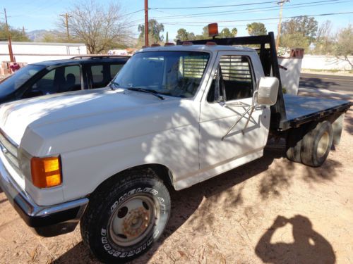 This is a Ford F-350 dully flat bed truck with the goose neck built into the bed. This truck only has 51,729 miles on it. The Flat bed was just painted two months ago. It has some good tires but two of them will need to be changed soon. I has A/C and heat but the fan motor in broken. This truck is a automatic and has a 351 5.8L V-8. The paint is in great shape but the interior is showing it's age a little. It also has the blinking caution light up top with the switch by wipers. This truck makes the beeping noise when backing up too. This truck rides and shifts great. The brakes were redone six months ago. This has always been a Arizona truck so it has no rust anywhere. I'm new to E-bay so If you have any questions then just call me at (843) 584-5523