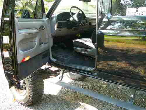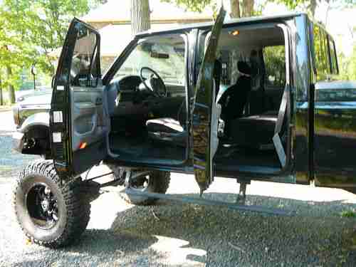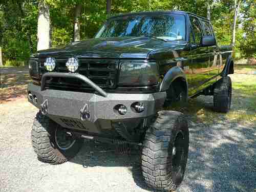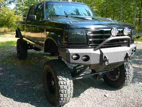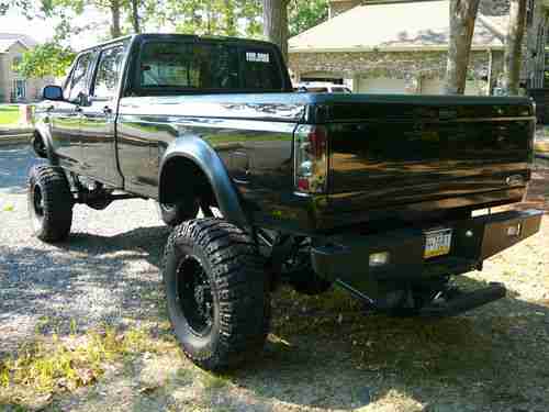 UP FOR AUCTION IS MY 1994 FORD F350 CREWCAB XLT 4x4, 460 CU IN. GAS ENGINE PICKUP. THIS IS A CALIFORNIA TRUCK WITH 64,000 ORGINAL MILES. BEAUTIFUL BLACK PAINT WHICH WAS PUT ON 3 YEARS AGO. A/C WAS REBUILT IN AUGUST AND BLOWS COLD. CRUISE CONTROL, POWER FRONT DOOR LOCKS, POWER FRONT WINDOWS, SLIDING REAR WINDOW. NEW 1000 WATT AM/FM/CD/MP3 JENSEN SYSTEM, AMP AND SUB WOOFER BEHIND REAR SEAT. NEW BLACK CARPETING, NEW HEAD LINER, NEW SEATS, ARE OUT OF A 2000'S TOYOTA, AND NEWLY RECOVERED IN BLACK AND GREY AS WELL AS THE REAR BENCH SEAT. FOX SHOCK SYSTEM, 14" LIFT WITH A 1 1/2" BODY LIFT, NO BLOCKS, NEW SPRINGS. AUTO TRANS, HEAVY DUTY REAR END GEARS. NEW WHEELS AND NEW PRO COMP 40" TIRES. NEW LED LIGHT PODS REPLACED OLD CAB RUNNING LIGHTS. NEW ARMORED BULL STEEL BUMPER. NEW PIAA LIGHTS AND THE LIGHTS IN THE BUMPER ARE MOTORCYCLE LIGHTS WITH HI AND LOW BEAM. INTERIOR IS ALMOST ALL ORIGINAL AND THE DASH IS IN GREAT SHAPE. EVERYTHING THAT WAS CHROME WAS REPLACED WITH EITHER GENUINE FORD PARTS OR PAINTED BLACK. TRUCK IS AWESOME AND IS A BIG HIT AT LOCAL CAR SHOWS. I KNOW I'M FORGETTING ALOT MORE STUFF. OVER $30,000 INVESTED. ANY QUETIONS CALL JEFF 570-672-1252, SINCE I HAVE THE TRUCK FOR SALE LOCALLY, I RESERVE THE RIGHT TO END AUTION AT ANYTIME.