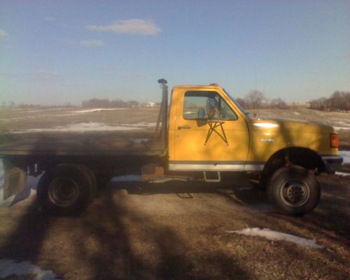 This is my Ford Superduty 4x4. It has a new 7.3L diesel crate motor (10K on it) with an ATS turbocharger, intercooler, and pyrometer. The transmission is a 5 speed manual with PTO pump and rear outlets with an in cab control box. The transfercase was replaced recently. The clutch was replaced with a kevelar clutch with the new engine and the 4 wheel disc brakes are all newish. The tires are solid but not new (I'd say around 25%). The flatbed was shop made and solid as a rock and has a gooseneck and rear hitch with a brake controller. The exterior is pretty clean for its vintage but there are a few dings plus rust coming mostly at the door bottoms and mirror attachments and the rockerpanels have been patch welded. The underbody is in excellent condition for its age with little rust, it is as clean as I've seen on a truck this old. The exhaust is 4" and new. The interior is in decent shape with power windows and locks. Overall just a solid workhorse. Will handle more weight than my newer 450's, its basically just an old, reliable tank. Not fancy but pretty sharp and definitely unique. Call Josh at 515-291-7420 with any questions. I will try to answer emails but I'm better about answering a phone.