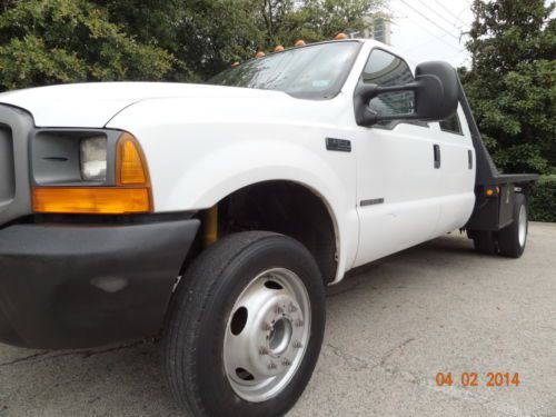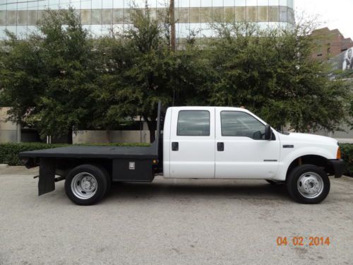 YOU ARE BIDDING ON 2001 FORD F450 XL 7,3 POWERSTROKE DIESEL FLATBED TRUCK. 2WD. AUTOMATIC. TEXAS TRUCK, RUST FREE. VERY CLEAN INSIDE AND OUT. VERY WELL MANTAINED AND TAKEN CARE OF. NO SMOKE NO LEAKS NO BLOW BY. WORKS VERY GOOD. COLD AC. AUTOMATIC TRANSMISSION SHIFTS SMOOTHLY TROUGH ALL GEARS AND HAVE NO ISSUES. TRUCK RUNS STRAIGHT, NO VIBRATION OR PULLING TO SIDE. COMFORTABLE RIDE. TIRES ARE APROXIMATELY 70% LEFT. SEATS ARE CLEAN, NO RIPS OR STAINS ANYWHERE. READY TO WORK. TRUCK LOCATED IN FORT WORTH TX. CLOSEST AIRPORT IS DFW INTERNATIONAL, 5 MIN AWAY. FEEL FREE TO CALL ME WITH ANY QUESTIONS 817-723-4806. LOCAL TEXAS BUYERS ARE SUBJECTT TO TTL CHARGE. OUT OF STATE BUYERS DONT PAY TAX AND GET TITLE ON HANDS. TITLE IS IN MY POSSESION. NO LIENS. THANK YOU, GOOD LUCK BIDDING!