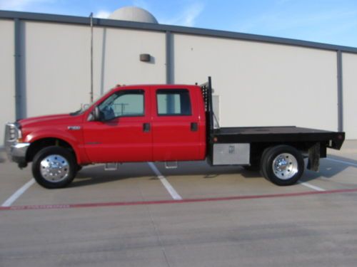 The F450s and F550s have heavier duty suspension, brakes and rear end than F350s. Allow for safer trailer and RV towing. MECHANICAL Engine starts like it should and idles great. (Even on cold days) Performance is impressive and the truck is in excellent working order. The turbo offers very good acceleration when needed. No modifications. AC and heat are good. Transmission is the durable 6 speed manual and operates very smooth. Clutch feels great and pedal play is perfect. Drives straight and brakes straight. Batteries are strong. Engine checked out by Ford Certified Technician. Injectors and turbo all good. Blowby is normal. One owner vehicle and fleet maintained. Used by Large Metal Roofing Contractor for high end commercial buildings. 4.30 rear end ratio. Limited slip differential. BODY Truck is very straight. Paint is very good due to being kept under carport most of the time. Minor dents as you would expect. Flatbed is a heavy duty quality unit and good condition. This is an Texas truck and rustfree. INTERIOR The interior is in very good condition. XLT cloth seats are nice. There is a one inch cut to the passenger seat. TIRES / WHEELS Factory Aluminum 19.5 inch wheels to allow for the large brake systems. All tires have good tread. Overall a valuable truck that would represent a private owner or a company well.