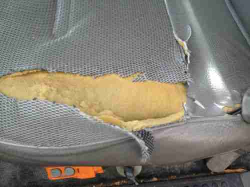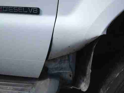 WORE OUT AND IS MISSING. WE USE IT AS A FLAT BED TRUCK. FRONT PASSENGER SIDE FENDER IS DAMAGED THAT CAN EASILY BE