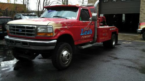 1994 ford f-superduty 7.3 powerstroke diesel gen.1 5 speed trans with Quigley 4x4 conversion 10 lug rears with locking hubs 5.13 gear ratio this truck is an animal, towing or plowing. 178.000 miles 1 owner/driver 8ft.meyer plow, only used for shop and home, never plowed parking lots or driveways. 10 ton B&B (Bill Bottoms the founder of challenger wreckers) fully extendable boom with dual 8000 lbs. winches and 7/16 cable 100ft. with 5000lbs.wheel lift. truck comes with L-arms, straps & ratchets , also 1 set of j hooks w/10 ft. of chain t-hooks & grab hook. wrecker body rebuilt in 2009 with aluminium wrecker body, all new valve body and hyd. hoses.lots of new parts. oil pan, oil cooler, flywheel, clutch , trans. truck well maintained and greased, dual chrome stacks and flame paint.fender are starting to rust,have 2 fenders. have spare wheel lift receivers & 1 L-arm, have push bumper also. truck needs rear tires soon, any questions please contact me. this truck is being sold locally also, so auction can end at any time. |