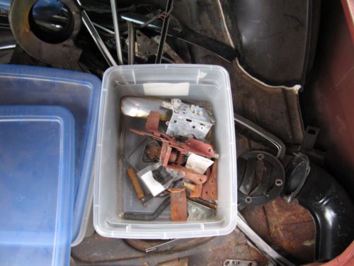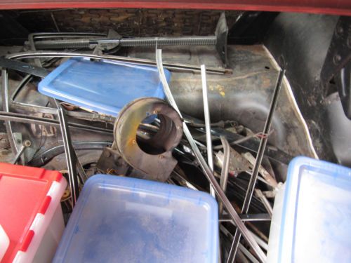 The car has a V8 272 cu in Y motor with automatic transmission that last ran in September of 2011 (motor still turns over). The chassis is solid and had been detailed just prior to the motor being freshened up a few years ago. The body is quite clean has very little rust, with only some small spots of rot on the passenger side rear quarter. However, this parts car does not come with a nose, dashboard, or windscreen. It only comes with what you see in the pictures. There are some odds & ends parts in the trunk (pictured) but that is it. |