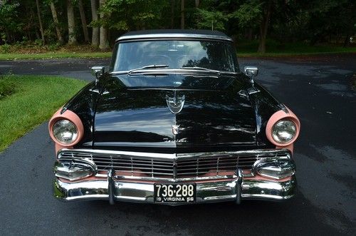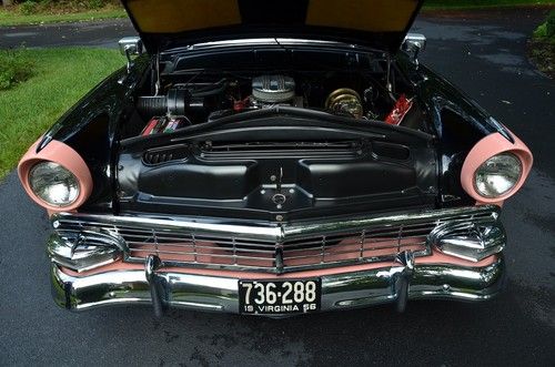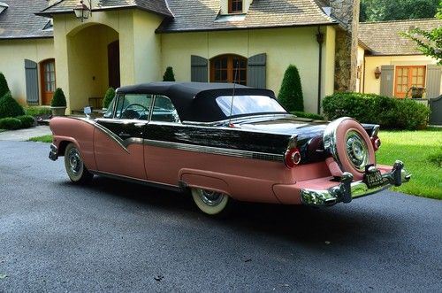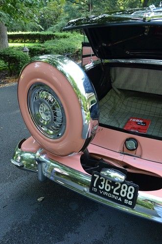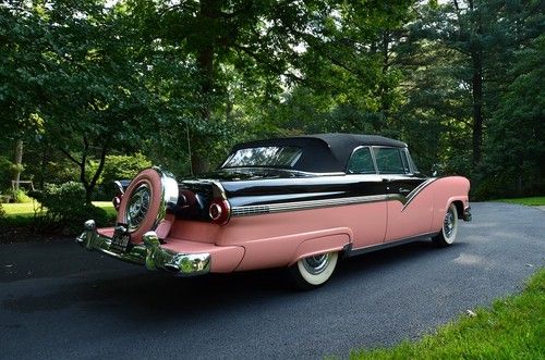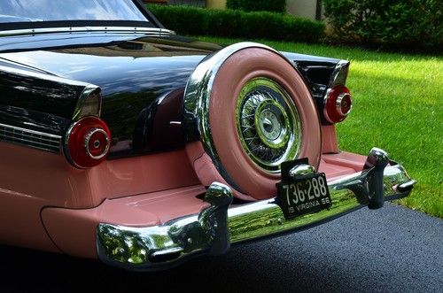 Fully restored 1956 Ford Fairlane Sunliner in beautiful Raven Black and Corral Pink with matching interior. The mileage is stated at 99,999 but the actual mileage is unknown, although the car has been driven less than 1,000 miles since its restoration and engine and transmission rebuild. The car has been updated for a better driving experience with the installation of a front power-disc brake system and electronic ignition system. The engine is freshly rebuilt and uses a modern Edelbrock intake and carb so it starts easily and runs smoothly. The original intake and carb come with the car. The photos illustrate lots of attention to detail in the restoration and the car eatures many period accessories like a continental kit that make this a classic 1950's cruiser. The transmission has also been rebuilt and it performs as new. Please ask all questions before bidding, and please only bid if you are a serious and qualified bidder. Bidders are also welcome to preview the car. Shipping will be the responsibility of the winning bidder or it can be picked up locally. Interested buyers may call Steve at 703-507-4937 until 9 pm EST. A deposit of $1,000.00 is required at auction close and full payment within 3 days of auction close unless otherwise agreed upon by high bidder and seller.