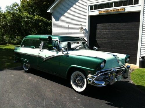 Here's a chance to own a very rare piece of Ford history. The '56 Parklane was a 1 yr only model. This 2 door wagon was built in Long Beach California and spent most of it's life in that state. It arrived here in NH approximately 5yrs ago. At that time it had the one and only repaint, in its history. This car has no body work, and no rust. It is super clean and show ready. Interior is original, and in great condition. I would welcome serious bidders to view the car, there are no excuses here. Car is loaded with many options, such as Grill Guard, Windshield Visor, Dual Spotlights w Rear View mirrors. Day/Night Interior Rearview Mirror. Tissue box holder, Radio, Rear area tonneau cover. Thunderbird Kelsey Hayes Style wire wheels. Powered by the Thunderbird 292 V8 with 3 speed manual transmission, featuring overdrive. Car drives down the road as good as a new car.