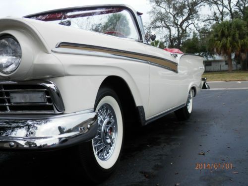 1957 Ford Fairlane From A Private Collection Completely restored and hard to find! 1957 Ford Convertible. Motor and Transmission rebuilt, with new restoration. Paint, interior,top, Kelsey Hayes wire wheels, Power top and continental kit. Completely detailed under carriage. Super sharp! Runs and Drives as good as it looks! Only 914 miles since the restoration! Look it over, But don't over look it! This is as good as it gets! |