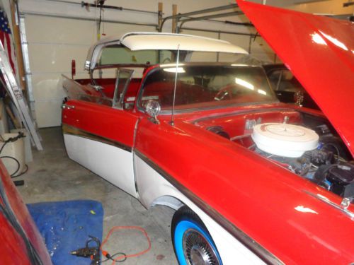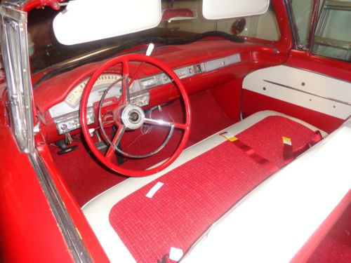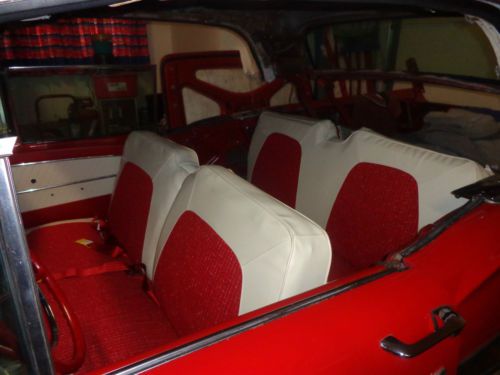 Built in Kansas City in August of 1957.  New sheet metal including rocker panels, rear floorboards, spare tire well and front headlight buckets.  It has been painted red middle, white top and bottom. Rechromed bumpers, tail light assemblies rechromed and with new sockets and bulbs, parking lights and assemblies rechromed and with new lenses, front grill, stainless molding and new clips for same.