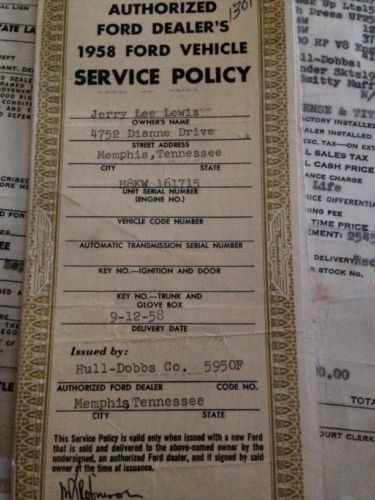 1958 FORD FAIRLANE 500 RETRACTABLE--SOLD NEW TO THE "KILLER" ---JERRY LE LEWIS---STILL IN HIS NAME---WITH ALL ORIGINAL PAPER WORK---NATIONAL FIRST PLACE WINNER---FLAWLESS---POWER STEERING---INTERCEPTOR 352---300 HORSE---FIRST TIME ADVERTISED---408 892 5959 CALL IF SERIOUS --- |