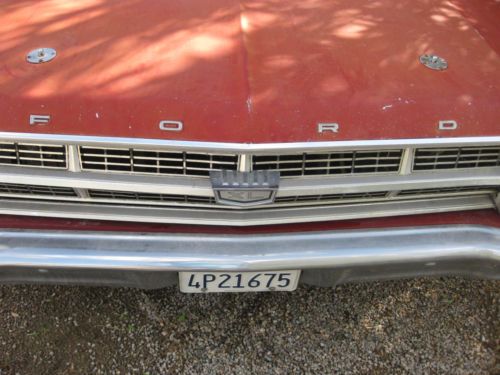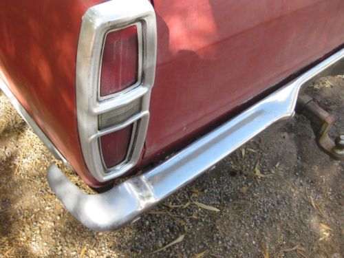 A nice 1967 Ford Fairlane 500 XL Ranchero, Red exterior with Black interior. Bucket seats with console and automatic shifter on the console. It has a 289 V8 2 barrell carb with dual exhaust. It comes with a trailer hitch, and rear air shocks. The vehicle needs some love and attention. The red paint is faded, and the chrome in need of some elbow grease. I have had the vehicle for 17 years and drove it as my daily driver for the first few years I owned it. For the most part the body is in great shape, all straight sheet metal, only one minor spot of rust (see pics) and the chrome bumpers are straight. The tailight rings on the rear have a few dimples in them (see pics) as does the front grille piece (see pics). The drivers seat has a tear on the top left corner of the seat back (see pics). The dash board has cracks in it from sitting out in the sun. This car has sat out in the open for many years as you can tell by the faded paint. I have tried to show pictures of all the areas of the car, especially with the defects listed above in them. The engine has not been started in 3 years and I think I might have dropped a push rod when I shut it off last time. I was trying to start the engine and it stopped and spun backwards. I have tried to free the stuck engine, but I am physically unable to do much physical work anymore, so I am going to let some lucky car person who is looking for a great car, take possession and reap the benefits. The transmission and brakes work great. This will make a great project car with the only major issue being the stuck engine. Once running you will love the car. Please ask questions as I want potential bidders to be satisfied with what they are bidding on. The car does have air conditioning but does not work.